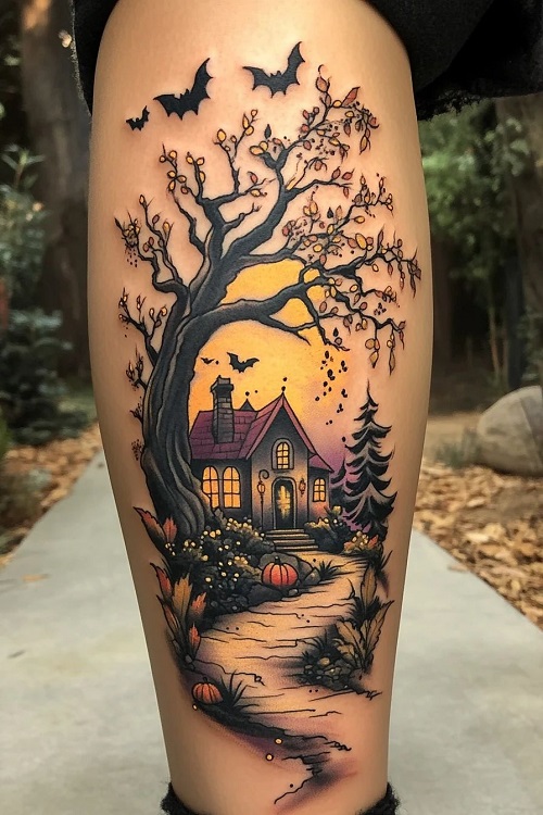 Take a look at this fantastic, spooky-themed tattoo, which radiates strong spooky energy. Pretty cool, huh?