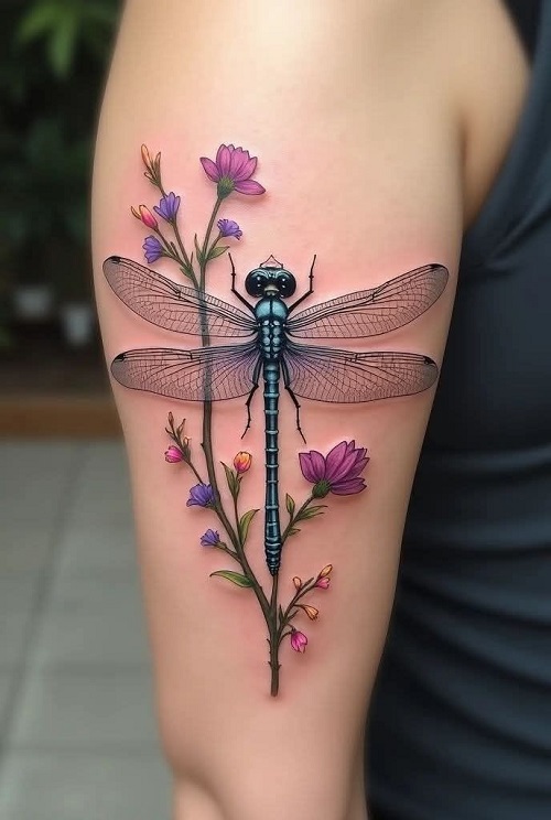 Here’s one that features a beautiful dragonfly with colorful, tiny flowers, creating a soft yet graceful pattern. Well, did you like it?
