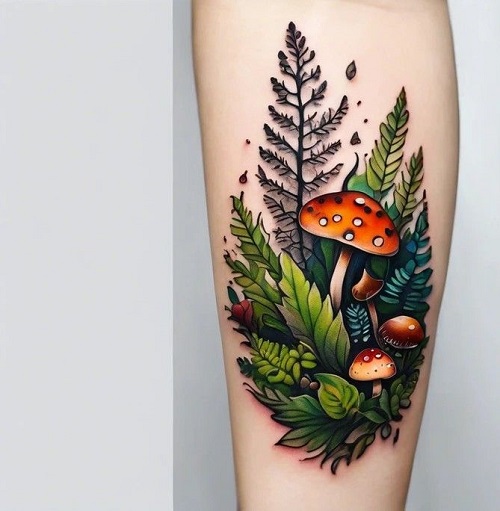 Simply a mushroom in the wild tattoo for plant lovers. Isn’t it adorable?