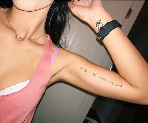 Some people like to go minimal, just like this script art. Get it done on your bicep to give it an aesthetic look.
