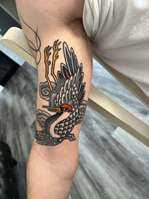 We don’t want to say much about this one because just look at it. It’s majestic, and the crane looks so attractive on the inner bicep.