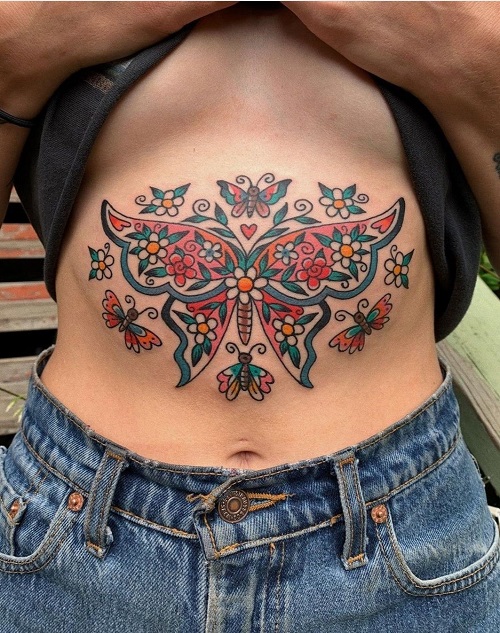 You can always pair a sternum tattoo with other elements. Why not a decorated moth? It is a symbol of spiritual growth, as well as the pursuit of knowledge and guidance.