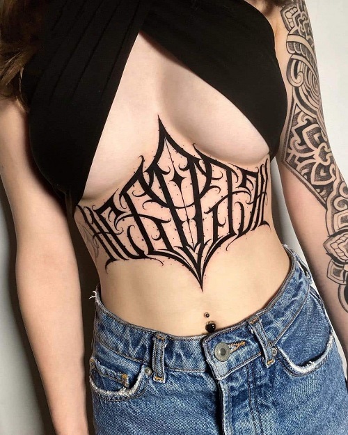 Why not opt for this heavily styled blackwork ink calligraphy, which creates a stunning aesthetic piece? If you are someone with a gothic edge, then do get it done.