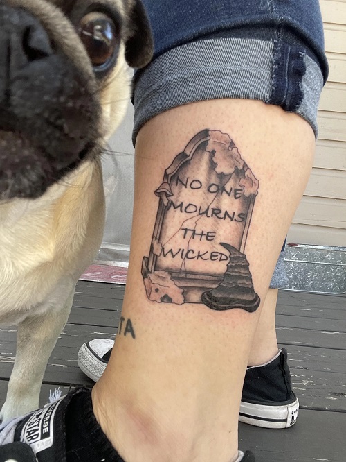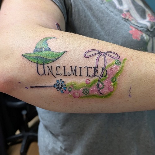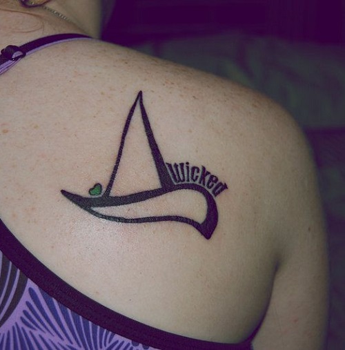How about a minimalist tattoo with Elphaba’s hat and the word “WICKED” inked on top?
