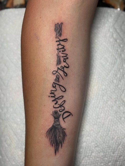 9. Script Tattoo With a Broom