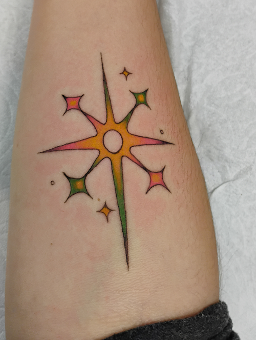 Nothing will look cuter than this sparkling tattoo idea, which looks like a spark of magic. Perfect if you like magical tattoos.