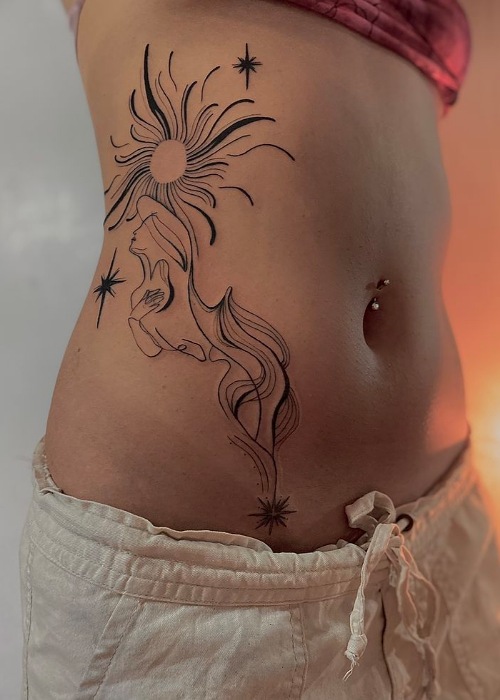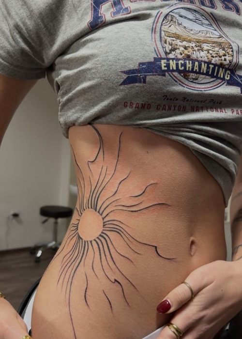 Don’t be surprised by the looks of this ink idea. It displays an abstract sun design spreading across your side-body.