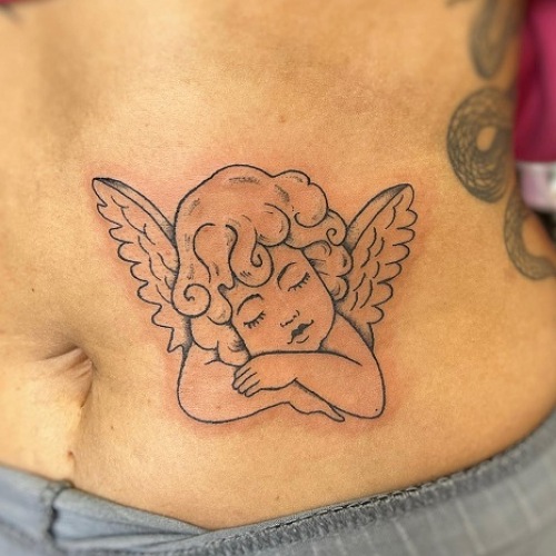 Not many words are needed to describe this baby angel tattoo. It calmly sleeps near your waist and is a cute idea.