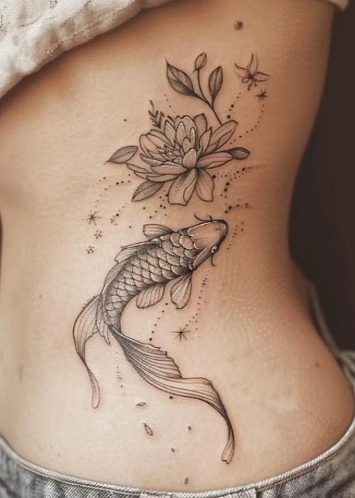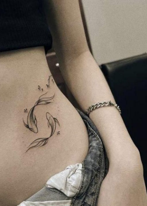Let this elegant and flowy tattoo of a koi fish sit at your waist and make wearing low-rise jeans even more fun.
